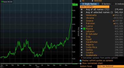 Na rynku CDS (kontrakty zabezpieczające przed bankructwem) dług Rosji skoczył do ponad 500 punktów bazowych. Oznacza to, że rynki wyceniają prawdopodobieństwo niewypłacalności Rosji na około 32 proc.