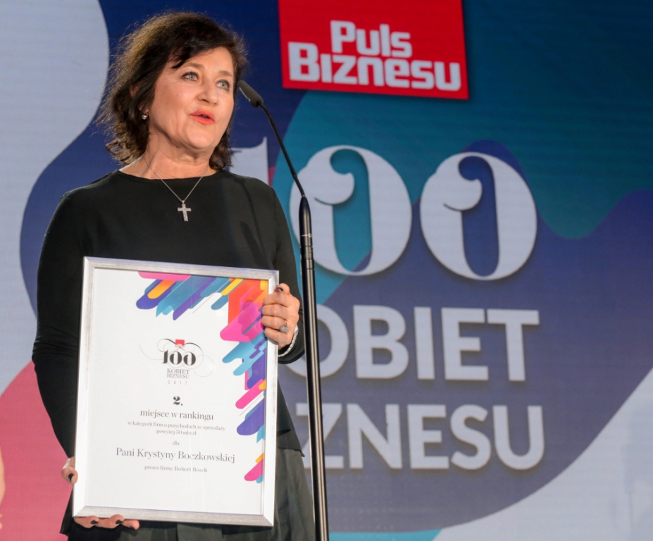 — Gdybym otrzymała tę nagrodę kilka lat temu, powiedziałabym: mnie się ona nie należy. To na pewno pomyłka, błąd w liczeniu. Dziś jako mentorka biznesu i członek rady programowej Kongresu Kobiet gratuluję tego wyboru. Uważam, że jest bardzo dobry. Jestem nie tylko prezeską tysiącosobowej firmy, ale też reprezentantką Boscha w Polsce. Poza tym od dziesięciu lat walczę o odbudowę w naszym kraju szkolnictwa zawodowego, które jest podstawą innowacyjnej gospodarki. Przez mentoring i różne sposoby doradztwa wspieram też kariery zawodowe kobiet. Nagrodę dedykuję wszystkim paniom, które chcą wziąć sprawy w swoje ręce, i mojej mentorce: profesor Magdalenie Środzie — mówiła Krystyna Boczkowska, prezes firmy Robert Bosch, laureatka trzeciego miejsca wśród zarządzających firmami z przychodami ze sprzedaży powyżej 50 mln zł.