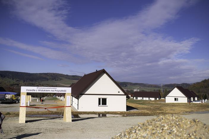 Najbardziej spektakularnym rezultatem akcji jest Osiedle z widokiem na przyszłość w Goszowie k. Stronia Śląskiego. Budowę rozpoczęto w grudniu 2024 r. – na działce przekazanej przez gminę, poza strefą zalewową. W niespełna rok powstało 12 domów jednorodzinnych w zabudowie bliźniaczej, czyli łącznie 24 lokale mieszkalne w pełnym standardzie pod klucz. Każdy wyposażony jest w pompę ciepła, rekuperację i rozwiązania pozwalające ograniczyć koszty eksploatacji. Budowę prowadziła firma Riser.domy, specjalizująca się w technologii szkieletowej prefabrykacji.
