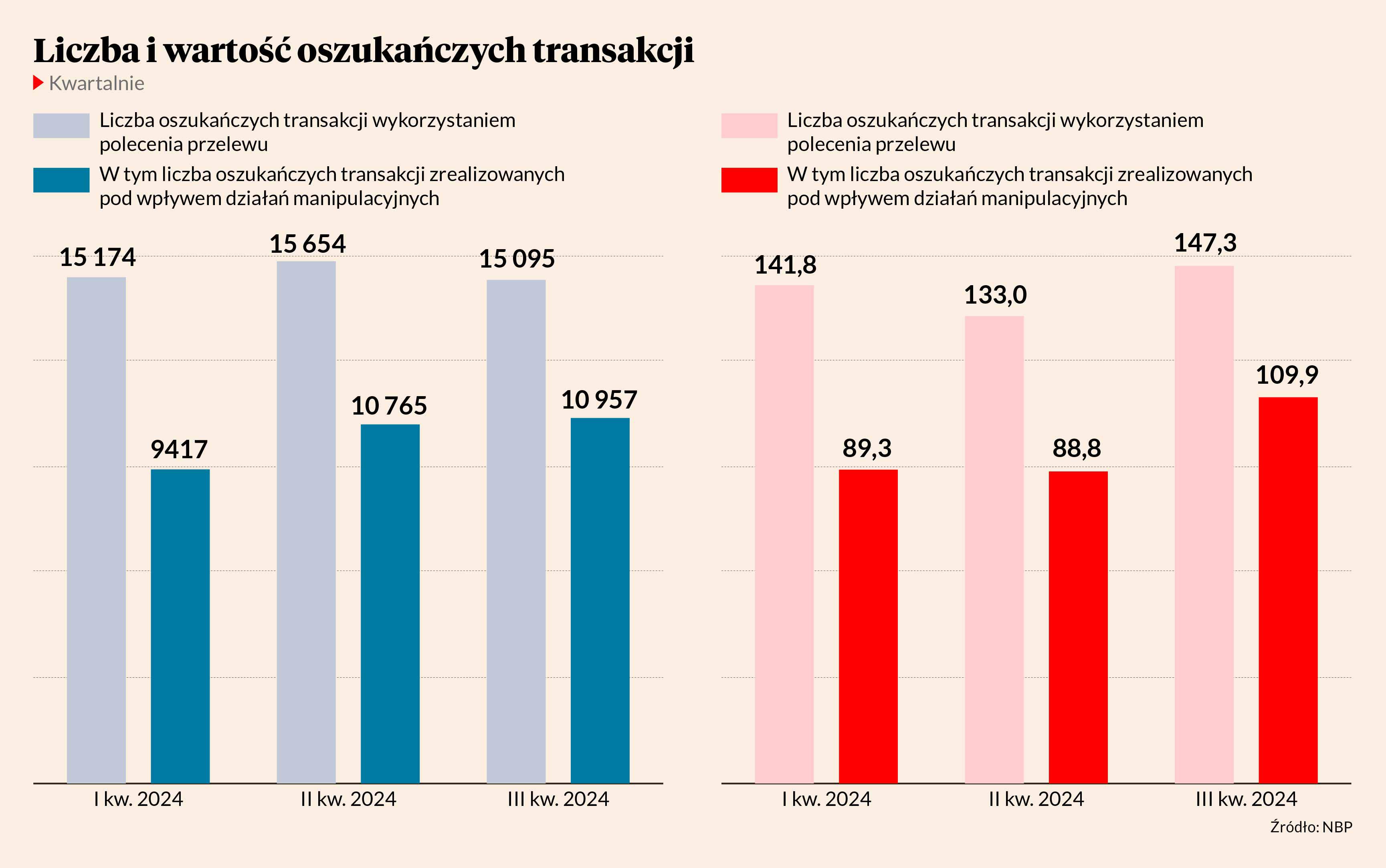 W społecznej świadomości utarł się pogląd, że problem ma charakter niszowy, ponieważ dotyczy starszych osób, podatniejszych na manipulację. To już przeszłość. Od lat NBP publikuje kwartalne zestawienia liczby i wartości oszukańczych transakcji płatniczych. Nigdy nie przyciągały specjalnie uwagi, gdyż wartości w nich zawarte były niewielkie. Statystyki obejmowały transakcje kartami skradzionymi i zgubionymi, które zazwyczaj są blokowane przez użytkowników, gdy tylko zorientują się, że karty nie ma w portfelu.