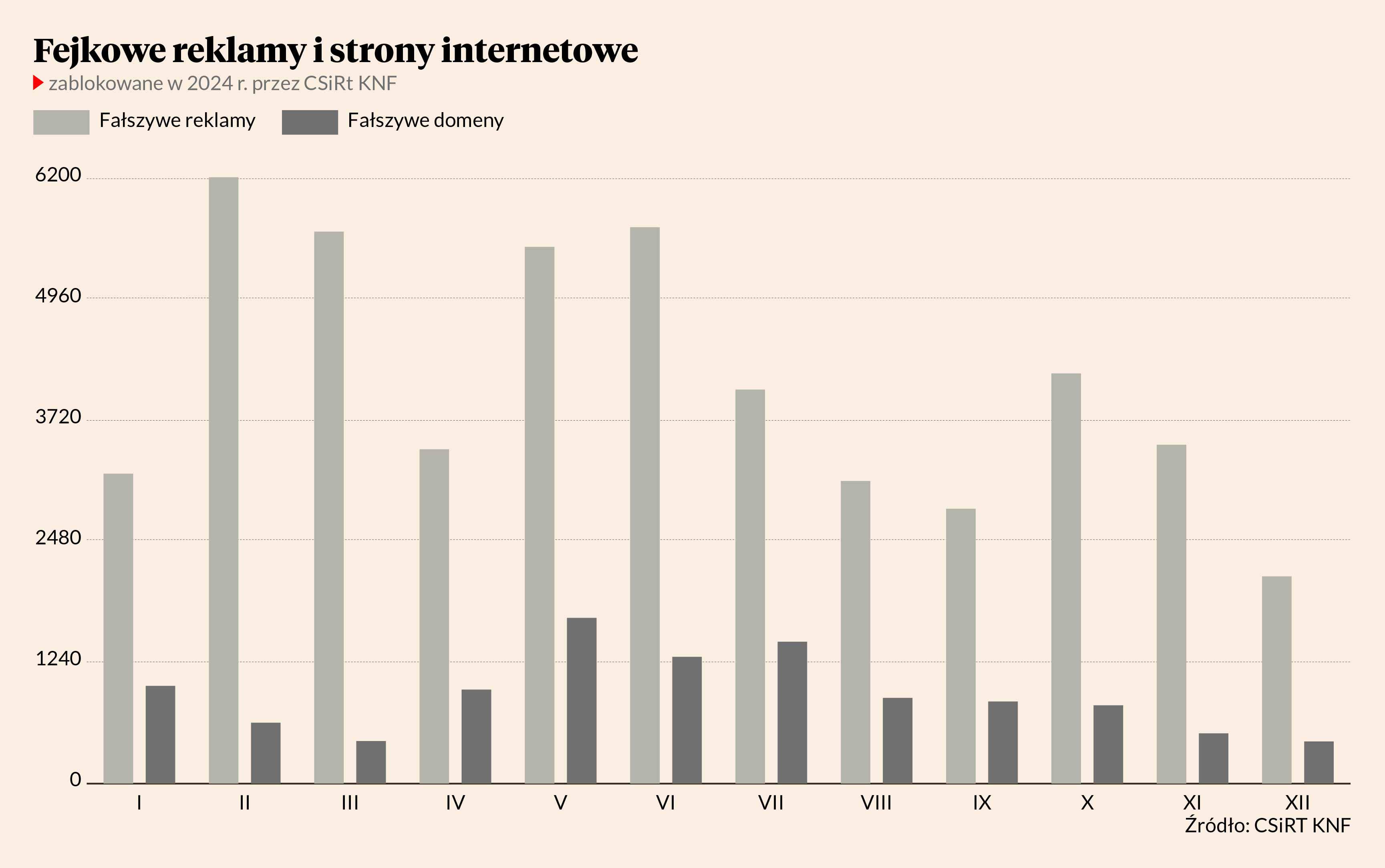 Z kolei CSiRT KNF, skanujący cyberprzestrzeń pod kątem działań dotyczących rynku finansowego, zgłosił do zablokowania ponad 10 tys. fałszywych reklam. Rok wcześniej było ich 7 tys.