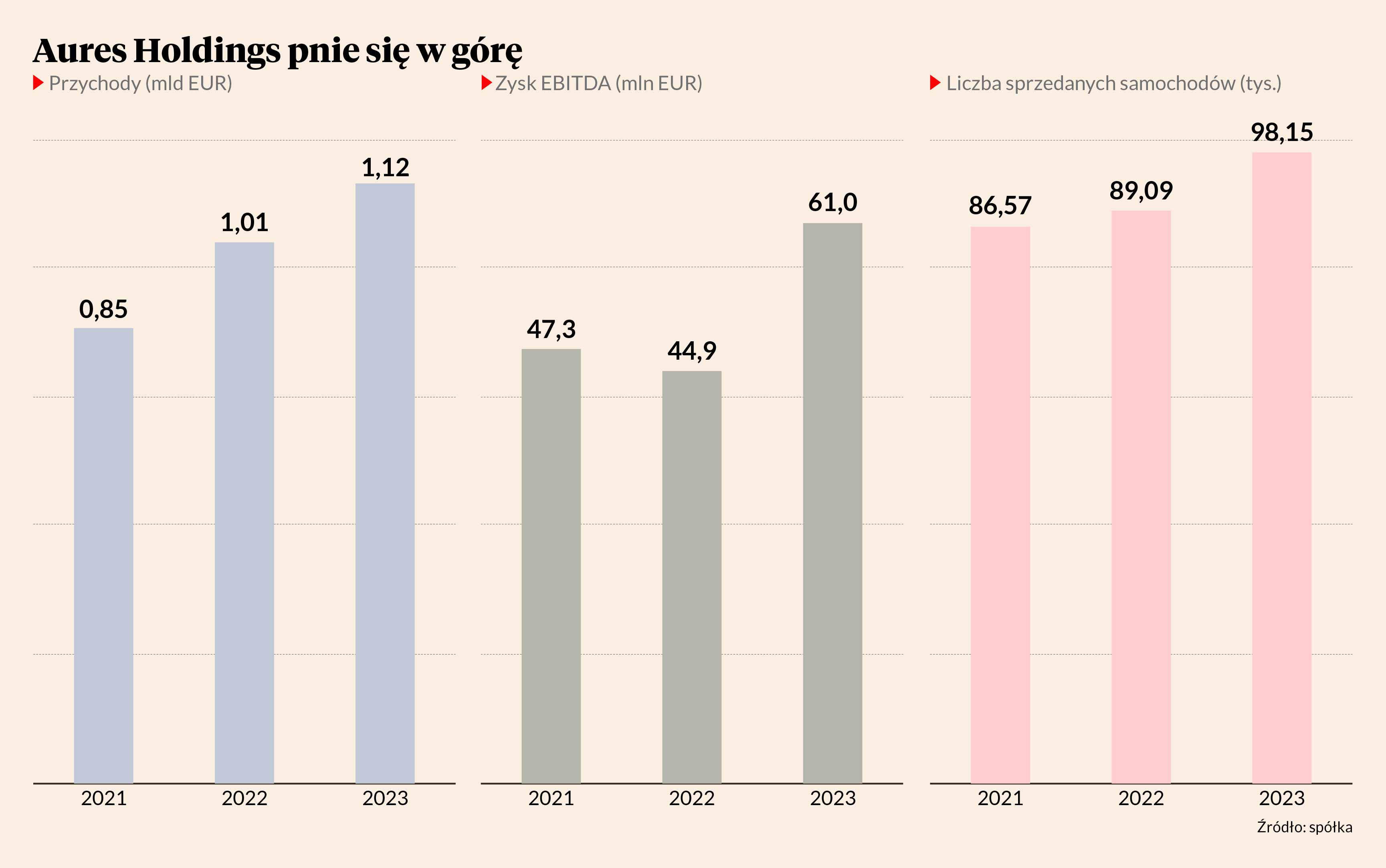 W minionym roku Aures Holdings sprzedał łącznie prawie 98,2 tys. pojazdów (wzrost o ponad 10 proc. rok do roku), dzięki czemu jego przychody przekroczyły 1,1 mld EUR (to o prawie 11 proc. więcej niż rok wcześniej).