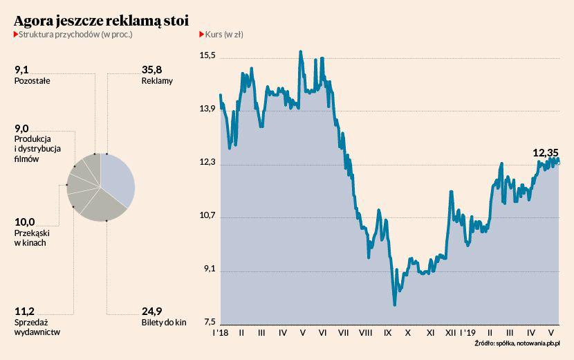 — Wyniki w segmencie internetu trudniej interpretować, patrząc tylko na przychody, bo część biznesu charakteryzuje się niższą marżą, a część wysoką dźwignią operacyjną. Generalnie spółka jest pod presją globalnego trendu, gdzie najwięksi gracze, jak Google czy Facebook, ciągle rosną szybciej niż cały rynek reklamy. W dłuższym okresie nie zakładam, że pojawi sie segment, który zastąpi internet, tak jak teraz internet zastępuje druk. Poza tym Agora ma ciekawą ekspozycję na rynek business to business przez Yieldbird czy ROI Hunter — dodaje Dominik Niszcz, analityk Raiffeisena.