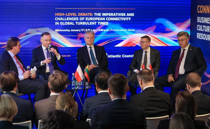 Z naturalnych powodów systematycznie rozrasta się zatem forumowe podgrodzie. Centrum kongresowe dotyka do głównej ulicy kurortu Davos o naturalnej nazwie Promenade. Położone przy niej pensjonaty, restauracje i sklepy są wynajmowane i na tydzień WEF całkowicie zmieniają wystrój. Państwa, firmy, organizacje, media aranżują swoje placówki, co pozwala im na przyklejenie się do właściwego WEF. Śladem innych państw, pawilon przy deptaku organizowała w okresie 2019-23 także Polska. Zasobne spółki skarbu państwa odpowiedziały na zapotrzebowanie Andrzeja Dudy, który w 2018 r. ubolewał, że placówkę ma choćby Rosja (od 2022 r. wykluczona z WEF), a my nie. W tym roku jednak Dom Polski zniknął, a w tym samym budynku zaaranżowane zostało Centrum Trójmorza. Ta inicjatywa obejmuje 13 państw z unijnego pasa od Estonii po Grecję, ale nadal pozostaje głównie politycznym chciejstwem, ponieważ poważne inwestycje infrastrukturalne można policzyć na palcach.