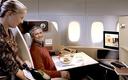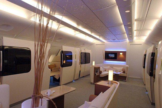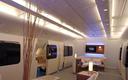 Wnętrze kabiny zaprojektowane przez Marc Newson jest wyposażone w panele dotykowe LCD, skórzane fotele, egzotyczne rośliny i katalog video z blisko 1000 filmów.