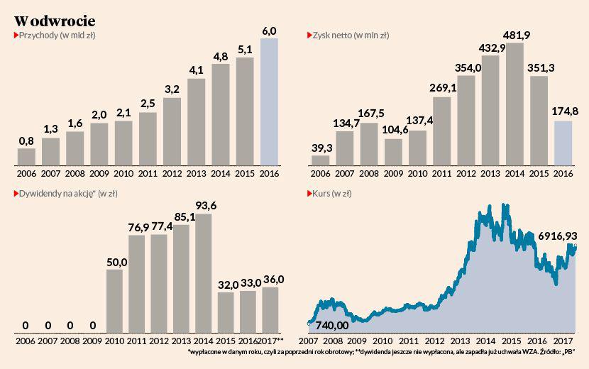Wskaźnik cena/zysk dla LPP przekracza 100. Oznacza to, że gdyby kupić akcje spółki z myślą o noworodku, a spółka przeznaczałaby cały zysk na wypłatę dywidend, noworodek raczej nie dożyłby zwrotu z inwestycji rodziców. Obecna wycena to jednak też pokłosie słabych wyników w 2015 i 2016 r. Zazwyczaj LPP handlowano jednak ze wskaźnikiem cena/zysk w okolicach 40, a to oznacza, że z dożyciem zwrotu z inwestycji miałby problem inwestor w średnim wieku. Oczywiście przy założeniu, że LPP nie powróci na ścieżkę szybkiego wzrostu. Marek Czachor raczej nie wierzy w zmianę trendu.