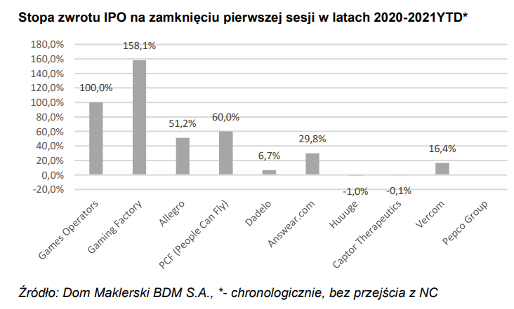 Takie były w ostatnich miesiącach stopy zwrotu z IPO na zamknięciu pierwszej sesji