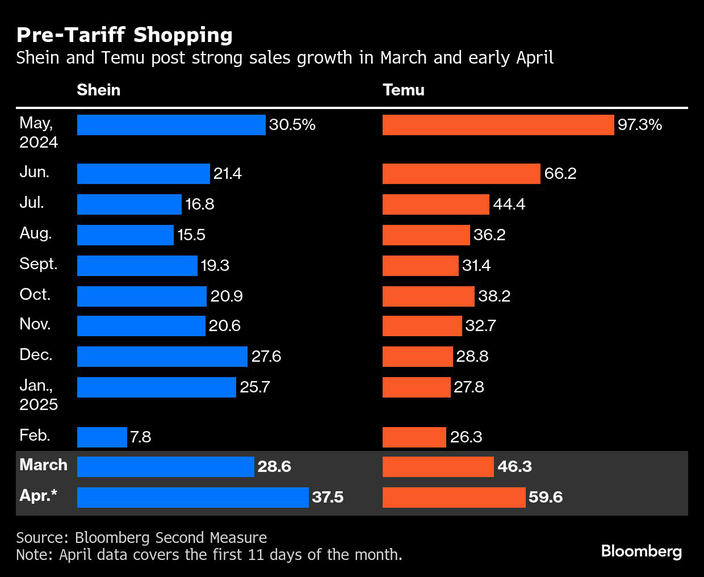 Z danych agencji Bloomberg wynika, że marzec i początek kwietnia przyniosły gwałtowne odbicie sprzedaży na Temu i Shein, które wcześniej notowały najwolniejszy wzrost od roku.