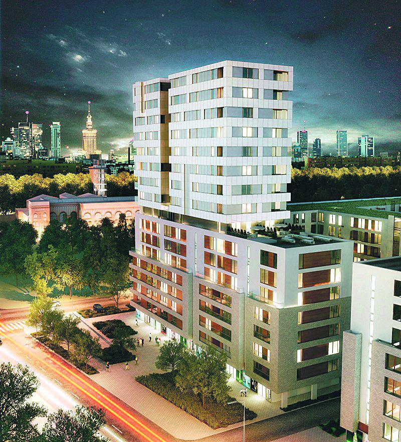 Całkowita powierzchnia tej części budynku wynosi 22,5 tys. mkw. Strefa mieszkaniowa zajmuje 9,5 tys. mkw. i podzielono ją na 166 apartamentów balkonem, loggią lub tarasem. Część użytkowa to 750 mkw. Oddana właśnie część wchodzi w skład kompleksu dwóch budynków mieszkalnych z lokalami usługowymi i garażami podziemnymi, trzema dziedzińcami, placami rekreacyjnymi i prywatnymi ogródkami. Powstanie tam łącznie 511 mieszkań oraz 3,2 tys. mkw. powierzchni usługowej. Inwestorem jest firma Okam Capital, zaś autorami projektu kompleksu Grupa 5 Architekci. © Ⓟ