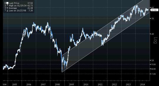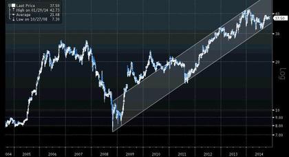 Dno tegorocznej korekty w notowaniach producenta aparatury pomiarowej nie zostanie już najprawdopodobniej pogłębione, wynika z analizy technicznej. Kurs zbliżył się do dolnego ograniczenia kanału wzrostowego, który opisuje ostatnie sześć lat notowań. Ewentualna korekta nie powinna sprowadzić cen papierów niżej niż do pułapu 34,5 zł, gdzie znajduje się dolne ograniczenie formacji. To oznaczałoby, że obecnego poziomu 37,5 zł nie należy spodziewać się zniżek przekraczających 8 proc.
