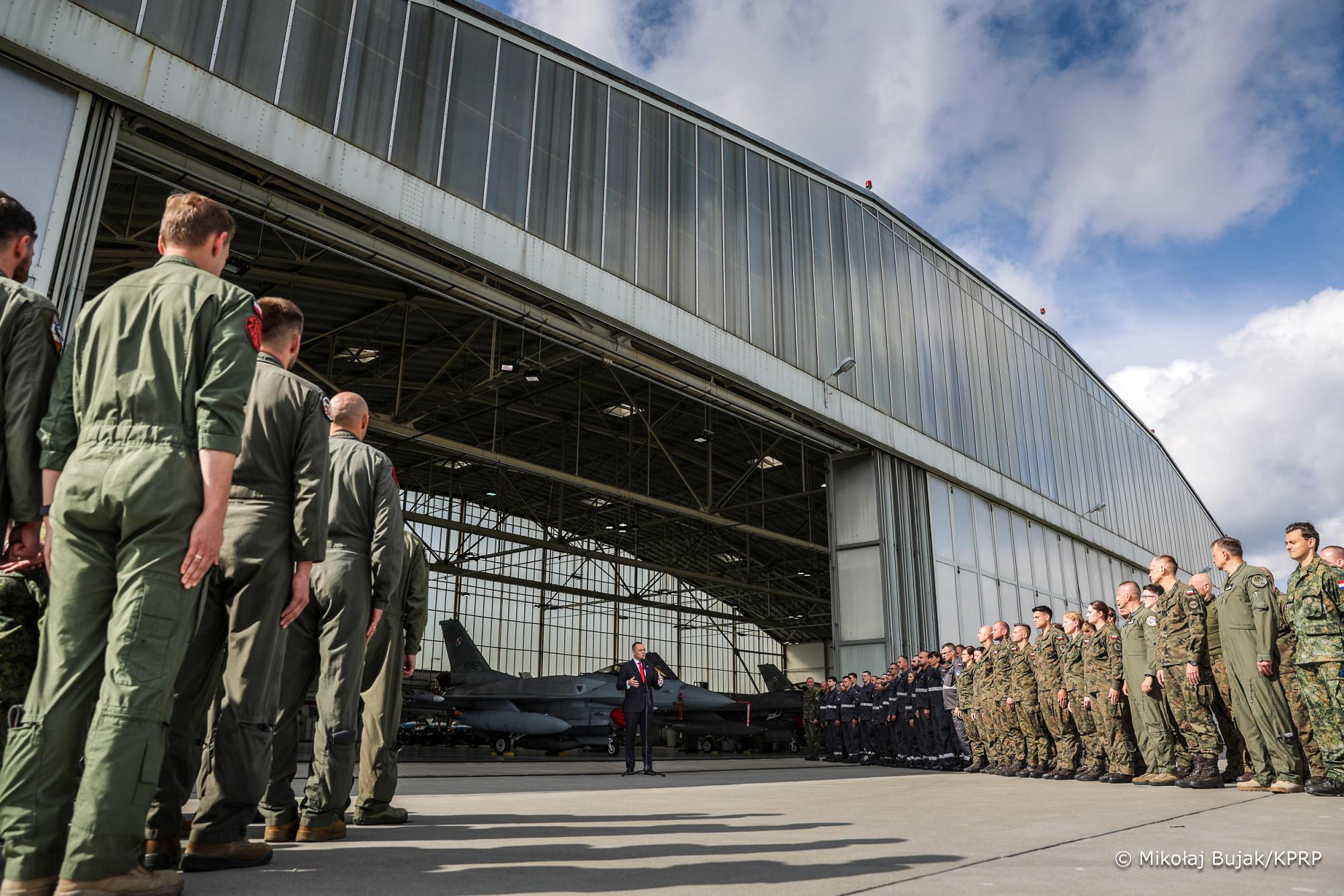 Wszystkie polskie siły polityczne zjednoczyły się w podziękowaniach dla wojska. Obaj rywalizujący najważniejsi decydenci przed czwartkowym posiedzeniem Rady Bezpieczeństwa Narodowego (RBN) na wyścigi pofrunęli z gratulacjami do dwóch baz, w których stacjonują nasze samoloty wielozadaniowe F-16. Premier Donald Tusk był szybszy w 32. Bazie Lotnictwa Taktycznego (BLT) w Łasku, z której operuje 16 maszyn. Notabene w niedalekiej już perspektywie to właśnie Łask przyjmie pierwszą partię polskich F-35. Prezydent Karol Nawrocki nieco później wylądował w 31. BLT w Poznaniu-Krzesinach, gdzie stacjonuje więcej F-16, obecnie 31. Notabene w Krzesinach bazują również w okresowej misji NATO holenderskie F-35, których para wzięła udział w nocnym zestrzeliwaniu rosyjskich dronów.