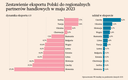 Wolumen handlu towarami Polski spada. W maju eksport Polski spadł o 2,6 proc. r/r, a import o 10 proc. r/r (licząc w euro). Jednak handel z niektórymi krajami regionu Europy Środkowej i Wschodniej rośnie, szczególnie z Turcją, czy Serbią. Zwiększa się też eksport do Wielkiej Brytanii.