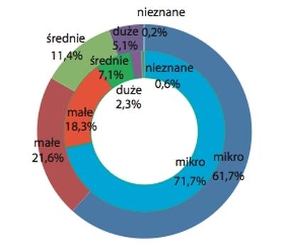 Struktura polskich przedsiębiorstw powoli staje się coraz bardziej podobna do unijnej. W latach 1999–2013 można było zaobserwować stopniowy spadek udziału mikroprzedsiębiorstw w liczbie firm – z 96,8 proc. w 1999 r. do 95,6 proc. w 2013 r. oraz wzrost udziału pozostałych grup przedsiębiorstw z sektora MSP, szczególnie małych z 2,3 proc. do 3,3 proc. i w nieco mniejszym stopniu średnich − z 0,8 proc. do 0,9 proc.