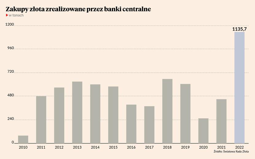 W ubiegłym roku banki centralne na świecie kupiły 1136 ton złota. Były to największe od 1967 r. zakupy kruszcu w wykonaniu władz monetarnych – wynika z danych Światowej Rady Złota. Był to także najprawdopodobniej drugi najwyższy rezultat w całej współczesnej historii i zarazem o 73 proc. przewyższający poprzedni rekord z 2018 r.