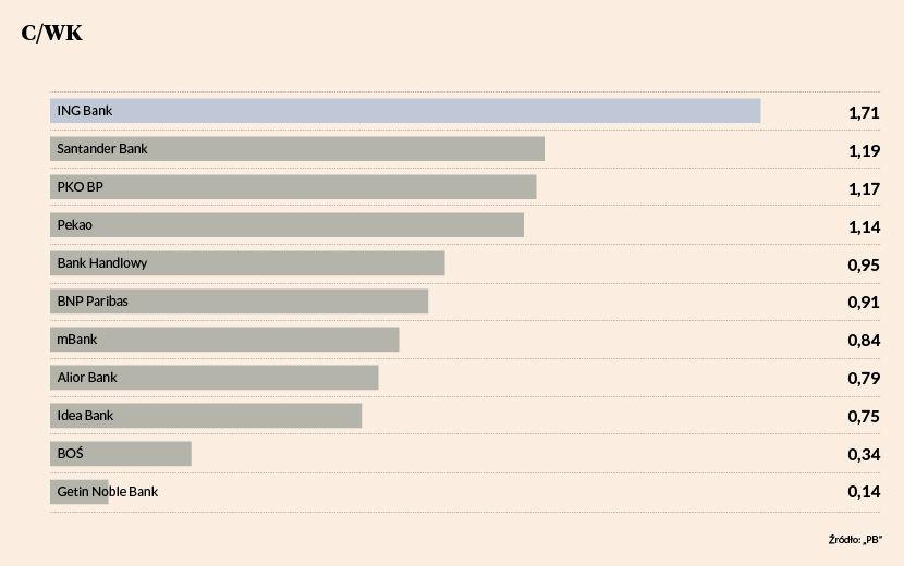 Problemy niektórych banków z jakością portfela kredytowego, niskie kapitały i obawy o konsekwencje wyroku ws. kredytów frankowych doprowadziły do sytuacji, w której tylko 4 z 11 banków notowanych na GPW wyceniane są na więcej niż wartość księgowa.