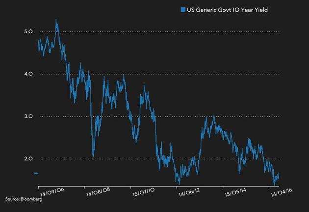 Rentowności amerykańskich obligacji 10-letnich od 2006 r. Źródło: Bloomberg.