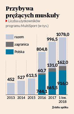 Najtrudniej zdobyć pierwszy milion, ale w jego ramach o drugie pół miliona łatwiej niż o pierwsze. Benefit Systems w 2004 r. zaczął wydawać karty MultiSport i dekadę zajęło mu pozyskanie 500 tys. użytkowników. Kolejnych zdobył znacznie szybciej. Zgodnie ze środowym raportem bieżącym spółki na koniec I kw. 2018 r. z programu korzystało — a przynajmniej miało jego karty — 1,08 mln osób, czyli o ponad 8 proc. więcej niż kwartał wcześniej.