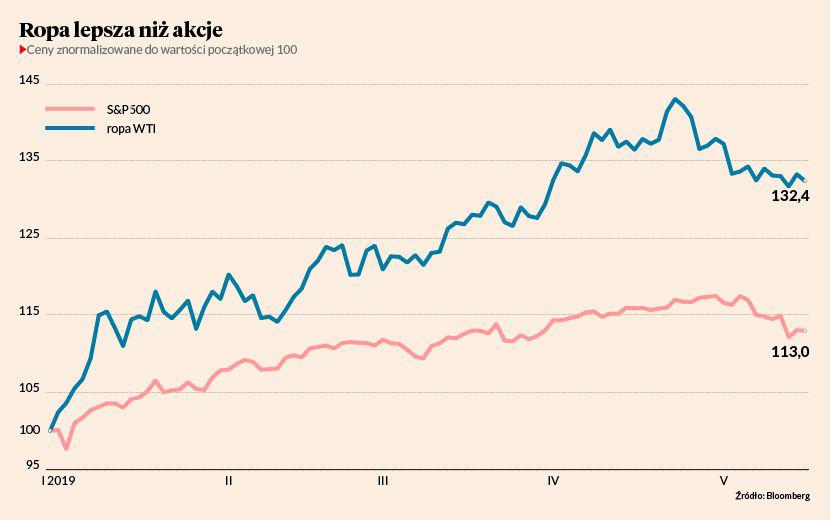 — Należy pamiętać, że od stycznia mieliśmy do czynienia z rajdem w notowaniach ropy naftowej. Dużo może nam powiedzieć ich porównanie z wykresem indeksu S&P 500. Widać wtedy spadki na rynku akcji po tym, jak wojna handlowa na linii Chiny — Stany Zjednoczone uległa ponownej eskalacji. Tymczasem cena ropy brent czy WTI jest na podobnym poziomie, bo notowania wspiera ryzyko geopolityczne. Indeksy poleciały w dół, a czarne złoto zachowywało się stabilnie. Chociaż pierwsza reakcja była negatywna, to rynek postanowił „kupować dołki” i kurs szybko odbił — uważa Bartosz Sawicki, kierownik departamentu analiz w Domu Maklerskim TMS Brokers.