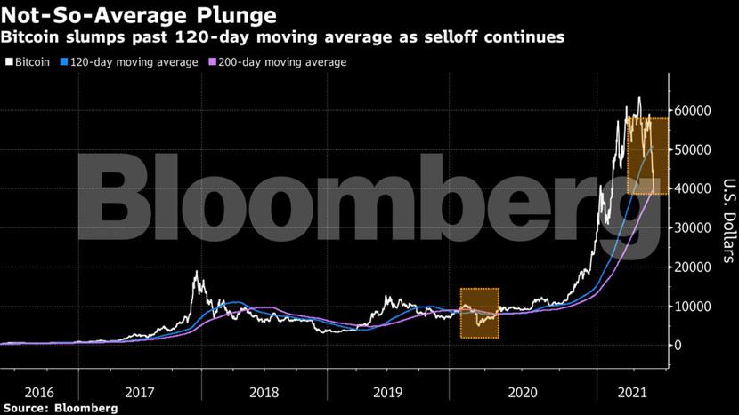 W środę do przeceny walut cyfrowych swoje dołożył bank centralny Chin przypominając o zakazie płatności kryptowalutami w kraju. Spadek kursu bitcoina w środę poniżej 40 tys. USD i 200-dniowej średniej ruchomej wywołał zaniepokojenie niektórych analityków.