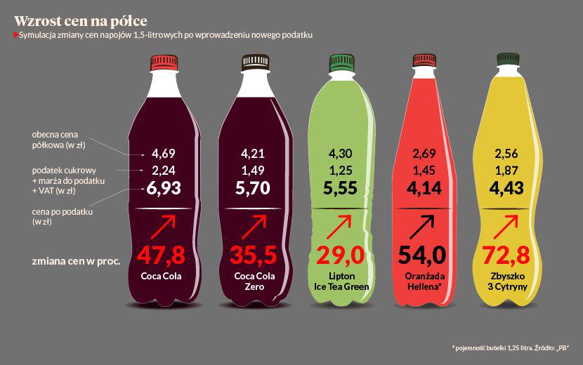 Z wyliczeń ekspertów branżowych wynika, że np. cena półkowa popularnej oranżady o poj. 1,25 l (obecnie 2,69 zł) podskoczy aż o 54 proc., do 4,14 zł za butelkę. Jan Kolański, prezes firmy Colian, apeluje o rozsądek.