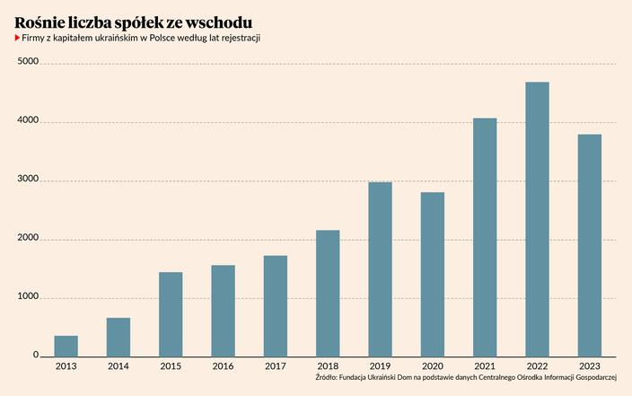 – W Polsce jest już ponad 28 tys. spółek z udziałem kapitału ukraińskiego. Najwięcej, bo prawie 4,7 tys. zarejestrowano w 2022 r. Ponadto około 60 tys. osób z obywatelstwem Ukrainy zarejestrowało w Polsce jednoosobową działalność gospodarczą. Tak duża liczba to efekt polskiej ustawy z 12 marca 2022 r. o pomocy obywatelom Ukrainy w związku z konfliktem zbrojnym na terytorium tego państwa – mówi Oleksandr Pestrykov, ekspert Fundacji Ukraiński Dom.