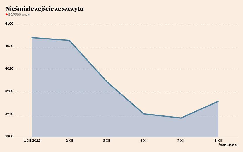 Po dwumiesięcznym rajdzie z początku IV kwartału 2022 r. amerykańskie akcje nieco się osunęły. Dobre dane gospodarcze w USA podsyciły obawy, że Fed pozostanie jastrzębi na dłużej, a to zwiększy prawdopodobieństwo wystąpienia recesji w przyszłym roku. Według danych BofA w pierwszym tygodniu grudnia z globalnych funduszy akcji wypłynęło 5,7 mld USD.