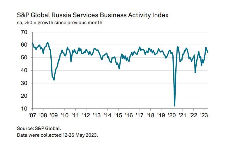 Oficjalne dane statystyczne i badania na temat rosyjskiej gospodarki pokazują w miarę niezły obraz. W marcu (ostatni miesiąc za jakie dostępne są dane) produkcja przemysłowa wzrosła, co można wiązać z faktem, że gospodarka wojenna generuje zwiększony popyt na towary. Badania PMI z Rosji pokazują, że koniunktura jest przez przedsiębiorstwa oceniania dobrze – zarówno w przemyśle, jak i usługach. Jednak te oficjalne dane i publikacje mogą ukrywać część rzeczywistości gospodarczej. Różne dane nieoficjalne wskazują na obniżenie aktywności gospodarczej w Rosji. Przykładowo największe regiony przemysłowe Rosji emitują w ostatnich miesiącach znacznie mniej zanieczyszczeń do atmosfery niż przed wojną (można to oszacować na podstawie zdjęć satelitarnych), sugerując zmniejszenie produkcji w tych zakładach. Wniosek jest taki, że najprawdopodobniej sytuacja ekonomiczna w Rosji i Białorusi – jak to zwykle w gospodarkach wojennych, nie doznających dużych zniszczeń – nie jest zła. Ale są to właśnie gospodarki wojenne, pełnie niedoborów, przemieszczeń wewnątrz struktury produkcji, z ograniczonym standardem życia. Nie można takiej gospodarki porównywać wprost do normalnej gospodarki działającej w czasach pokoju.