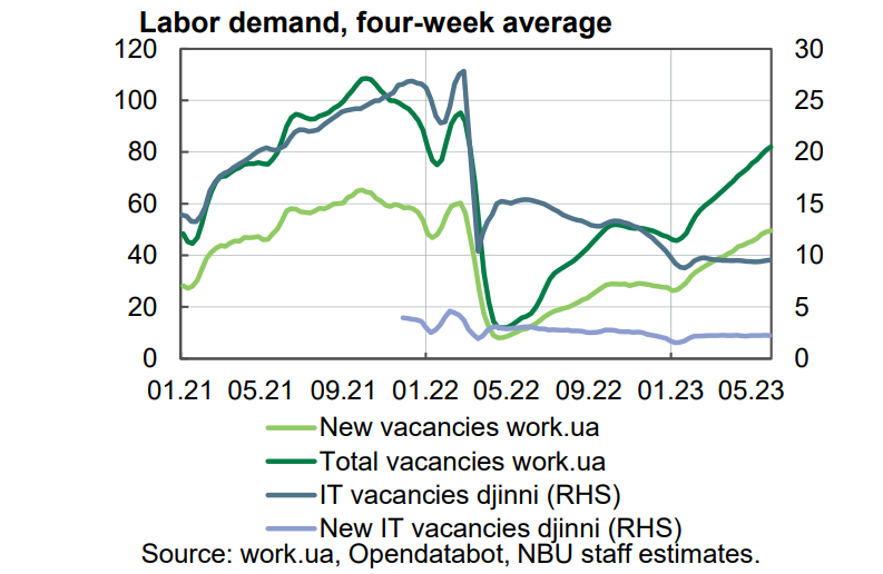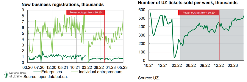 Ukraińska gospodarka jest przytłoczona przez wojnę, ale wiele wskaźników pokazuje bardzo stopniowy powrót do normalnej aktywności gospodarczej i społecznej na terenach nie dotkniętych wojną. Oto kilka przykładów. Liczba sprzedanych biletów kolejowych przekroczyła ostatnio poziom sprzed początku wojny. Podobnie jest z liczbą rejestracji działalności gospodarczych. Liczba ogłoszeń o pracę powoli zbliża się do poziomu sprzed początku wojny (choć częściowo odzwierciedla to sezonowy popyt w rolnictwie oraz fakt, że firmy mają problem z zastąpieniem pracowników zmobilizowanych do wojska). Wyraźnie poprawiają się wskaźniki nastrojów konsumentów. Natomiast dość istotne problemy występują w dziedzinie eksportu zbóż ze względu na obstrukcję działania tzw. „korytarza zbożowego” przez Rosję. A eksport zbóż jest najważniejszą dziedziną ukraińskiej gospodarki, dlatego ten element będzie ciążył na dochodach i ogólnej aktywności ekonomicznej kraju.