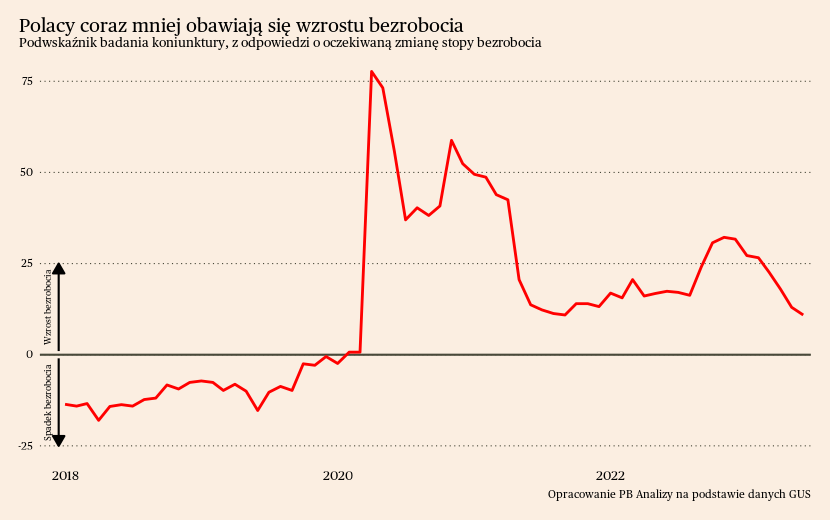 Gospodarstwa domowe coraz mniej obawiają się bezrobocia. Początkowe obawy o powrót trudności na rynku pracy, znanych na przykład z kryzysu finansowego 2008 roku, nie zrealizowały się. Popyt na pracę w Polsce jest wysoki, a w wielu branżach wręcz brakuje pracowników. W konsekwencji bezrobocie w ostatnich miesiącach nie rosło i nie będzie rosnąć w najbliższej przyszłości.