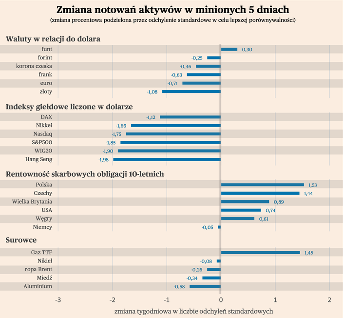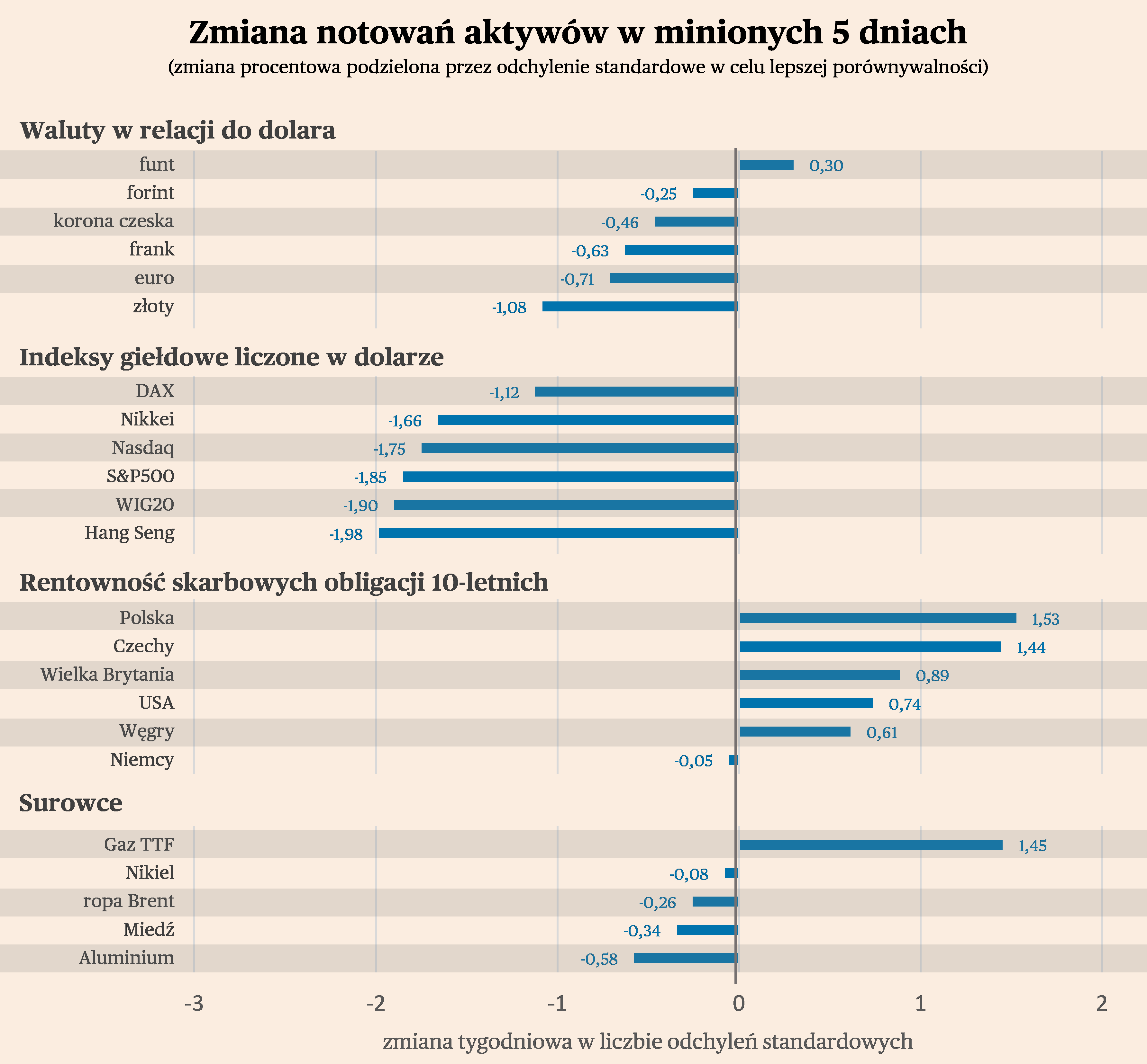 Przedstawiamy krótkie podsumowanie najważniejszych zmian na światowych rynkach finansowych z ostatnich pięciu dni – zaczynając od walut, przez akcje, obligacje po surowce.