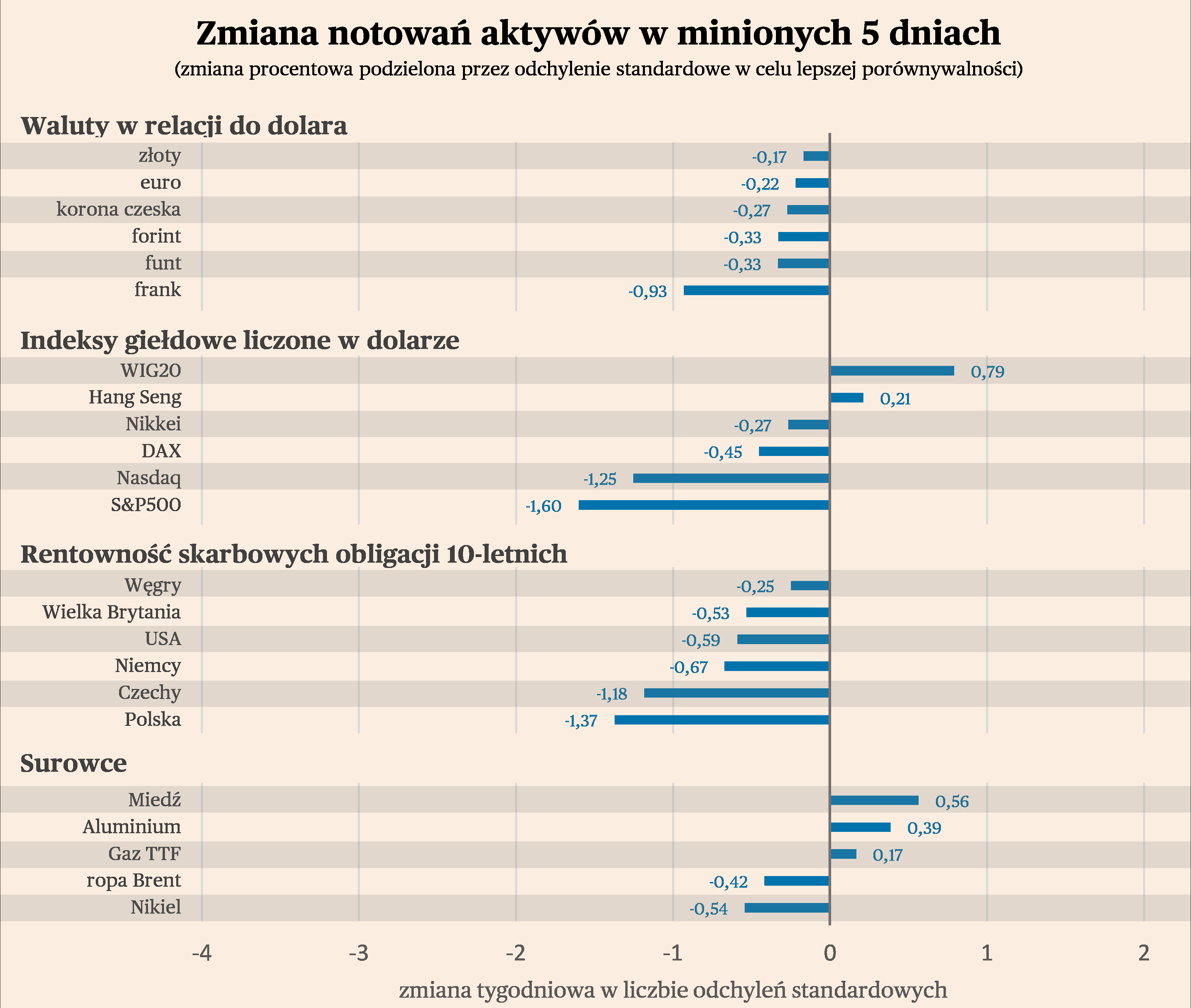 Przedstawiamy krótkie podsumowanie najważniejszych zmian na światowych rynkach finansowych z ostatnich pięciu dni – zaczynając od walut, przez akcje, obligacje po surowce.