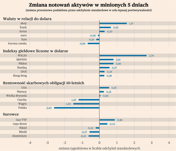 Przedstawiamy krótkie podsumowanie najważniejszych zmian na światowych rynkach finansowych z ostatnich pięciu dni – zaczynając od walut, przez akcje, obligacje po surowce.