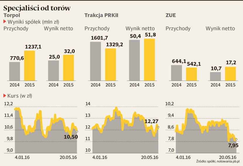 — Od trzech lat słyszymy, że będą kontrakty z nowej unijnej perspektywy budżetowej, ale ciągle ich nie ma. Spółki kończą stare zlecenia, Trakcję wspiera trochę działalność na Litwie, ale generalnie wszystkie trzy firmy będą miały problem z portfelem zamówień. Jak w końcu zostaną ogłoszone przetargi przez PKP PLK, może to wywołać presję na marże. Widać ją zresztą w kilku małych przetargach rewitalizacyjnych, które zostały już ogłoszone — tłumaczy Tomasz Duda.