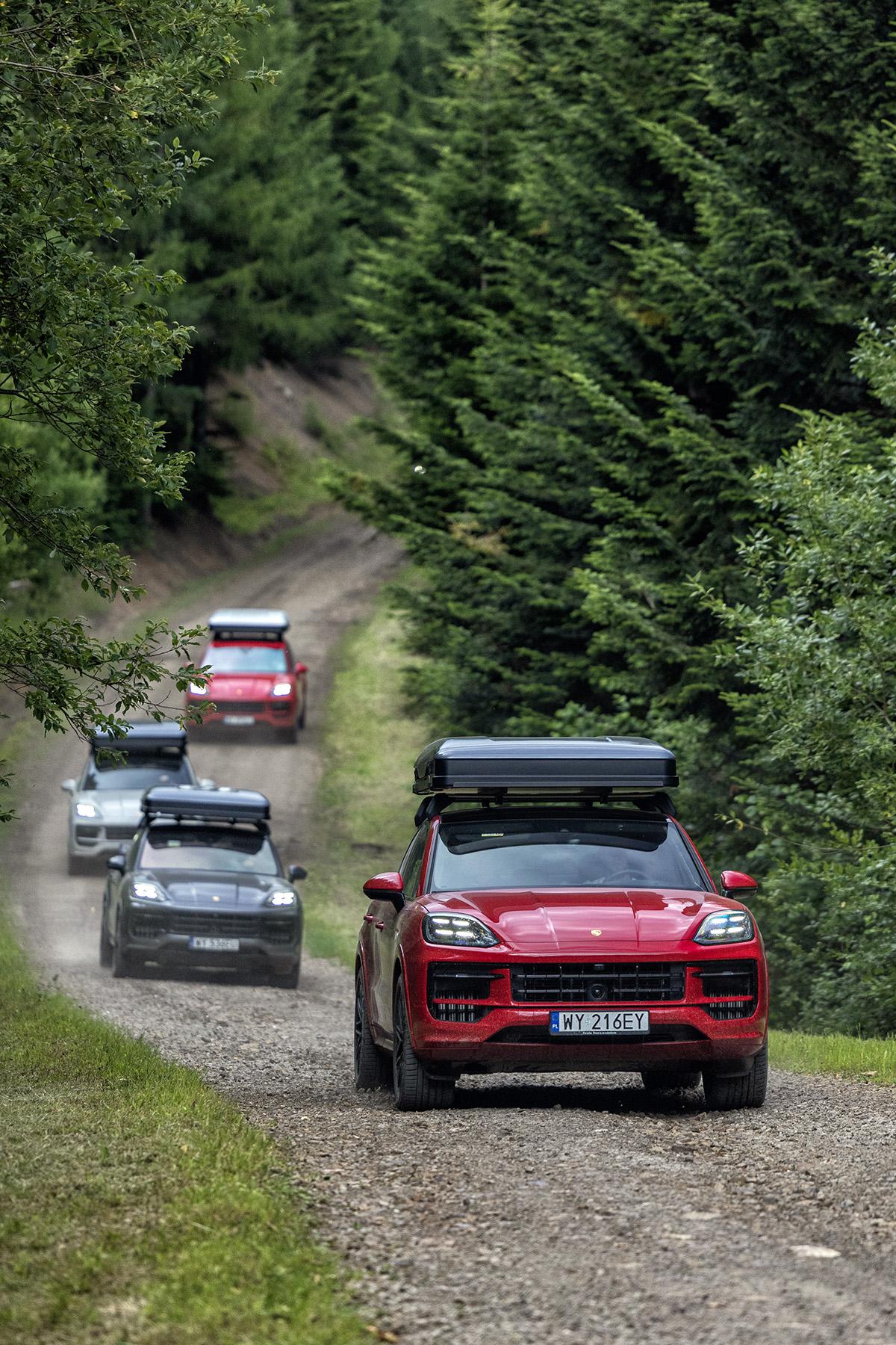 Dziś, gdy spojrzymy na Cayenne Turbo GT – 680 koni mechanicznych, czas na Nürburgringu krótszy niż osiągany przez sportowe coupé – widzimy nie tylko SUV-a. Widzimy mit spełniony. Feniksa, który wzbił się z popiołów kryzysu i przywrócił blask całemu rogowi obfitości marki Porsche. Cayenne to jeden z najlepiej prowadzących się SUV-ów na świecie. Co ja piszę?! To najlepiej prowadzący się SUV tej wielkości na świecie. To rodzinne auto, którym możesz i powinieneś pośmigać po torze, jakkolwiek niedorzecznie to by brzmiało. Cayenne daje tam radę. W sumie nie powinno to dziwić. Zawsze powtarzam, że Porsche nie umie budować aut, umie budować 911. Nic dziwnego, że każdy z modeli marki jest 911 w swojej klasie. Ale że daje radę w terenie? To już nie jest takie oczywiste. SUV powinien radzić sobie poza utartymi ścieżkami. Nie mówię tu o trudnym terenie zarezerwowanym np. dla Jeepa Wranglera, ale w biwak powinien potrafić. I potrafi. Porsche, po latach czytania o tym, jak to Cayenne doskonale radzi sobie na asfalcie, jak połyka kolejne ciasne zakręty, jak doskonale zestrojone ma zawieszenie i jak blisko mu do 911, powiedziało stop! Zabrało nas (w tym mnie) w Bieszczady. Z namiotem na dachu, bez zasięgu internetu, no i bez asfaltu.