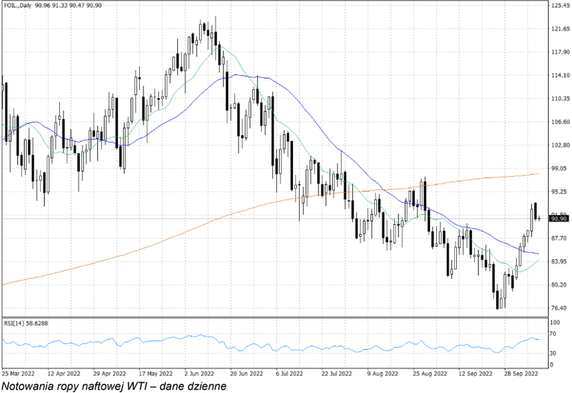 Niektóre z tych czynników nadal są wsparciem dla cen ropy. Tu króluje niedawna decyzja OPEC+ o znaczącym obniżeniu limitów wydobycia tego surowca od listopada. Jest ona przede wszystkim sygnałem, że rozszerzony kartel jest skłonny bronić cen ropy przed zbyt dużym osunięciem się w dół. Warto także wspomnieć, że globalne zapasy ropy naftowej są relatywnie niskie, co także zwiększa napięcia dotyczące podaży tego surowca.