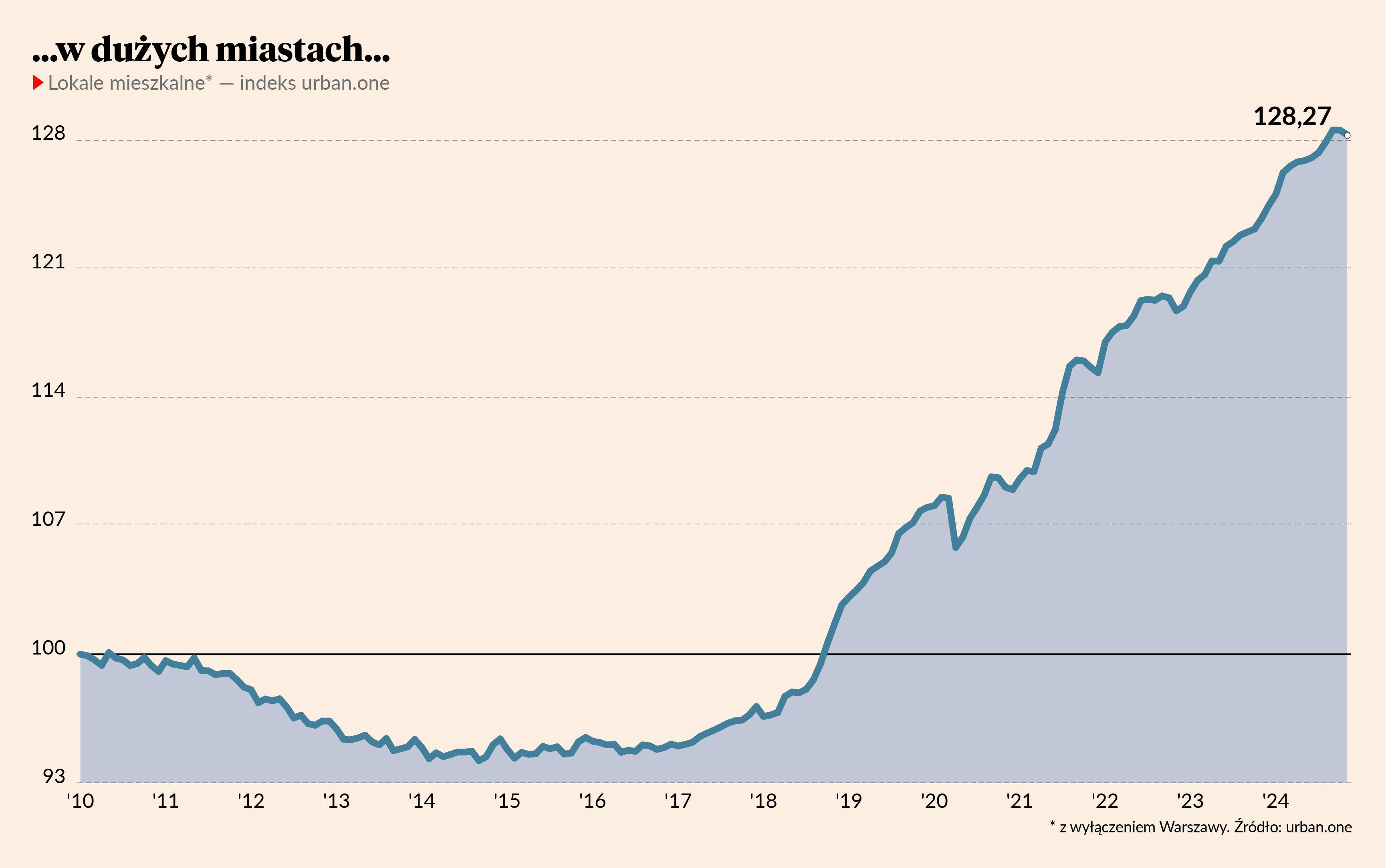 Wartość indeksu urban.one dla mieszkań w dużych miastach spadła w listopadzie o 0,25 pkt i wyniosła 128,27.