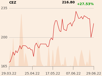 CEZ wypłaci 48 CZK dywidendyKamil Zatoński@pulsinwestora[email protected]opublikowano: 2022-06-29 07:46Walne zgromadzenie CEZ zdecydowało o wypłacie 48 CZK dywidendy na akcję (9,12 zł).PosłuchajZostań subskrybentemi słuchaj tego oraz wielu innych artykułów w pb.plDzień dywidendy ustalono na 4 lipca. Z zysku za 2020 r. dywidenda wyniosła 9,14 zł.