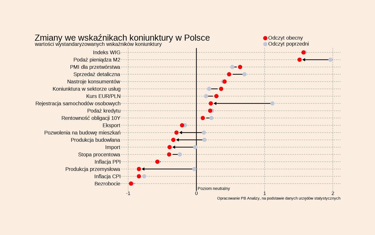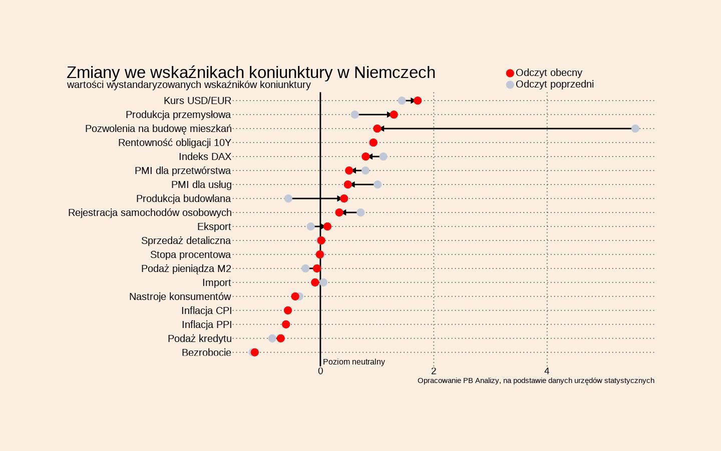 Co miesiąc aktualizujemy informacje o kondycji światowej gospodarki przez pryzmat 80 wskaźników z czterech krajów – Polski, Niemiec, Stanów Zjednoczonych i Chin. Są to zarówno informacje o produkcji i sprzedaży, jak też z rynków finansowych – mają odzwierciedlać faktyczną koniunkturę i nastroje. Wszystkie analizowane dane można obserwować i pobierać na naszej platformie PB Analizy.