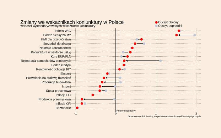Koniunktura w Polsce znajduje się 0,2 odchylenia standardowego powyżej średniej z ostatnich pięciu lat. Według prognoz OECD gospodarka Polski wzrośnie w 2025 r. o 3,3 proc., a w przyszłym roku o 3,4 proc. Prognozy rynkowe instytucji finansowych są jeszcze wyższe. Zagrożeniem dla wzrostu może być spowolnienie w światowym handlu, a także sytuacja geopolityczna. W ostatnim tygodniu spłynęły dane o produkcji przemysłowej i budowlanej, oraz cenach producentów i nastrojach konsumentów.