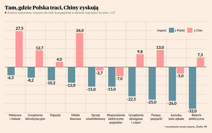 Jest jeszcze punkt wspólny dla całej listy – konkurencja z Chin. We wszystkich analizowanych branżach firmy z Państwa Środka zyskują udziały w sprzedaży na europejskie rynki. Chiński rząd za wszelką cenę stara się stymulować eksport z powodu załamania koniunktury na rynku krajowym. Niektórzy ekonomiści nazwali to „drugim chińskim szokiem”, czyli kolejną fazą ekspansji tamtejszego przemysłu na świecie. Pierwsza faza przypadła na lata 90. i 2000.