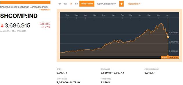 Spadają co 5,8 proc. w piątek główny wskaźnik giełdy w Szanghaju (Shanghai Composite Index) powiększył już do 29 proc. swoją stratę od szczytu z 12 czerwca bieżącego roku. W tym czasie z parkietu „wyparowały” środki o wartości ponad 2,8 bln USD, kończąc tym samym najdłuższą hossę giełdową w historii chińskiej giełdy. W efekcie rosnącej siły podaży, parkiety w Państwie Środka weszły 29 czerwca w rynek niedźwiedzia.