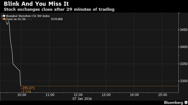 Automatyczne zastopowanie notowań włączyło się gdy giełda w Szanghaju odnotowywała spadki 7,32 proc., a w Shenzhen - 8,35 proc.