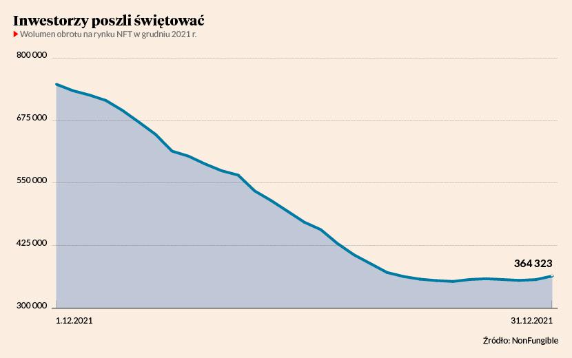 Wolumen transakcji na rynku NFT w grudniu 2021 r. spadał z każdym dniem i oprócz jednorazowego podbicia utrzymywał się w trendzie spadkowym.