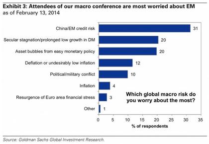 Na ubiegłotygodniowych konferencjach z najzamożniejszymi klientami azjatyckimi bank zadał im pytanie o największe zagrożenia dla rynków o charakterze makroekonomicznym. Wyniki ankiety w notce, do której dotarł portal BusinessInsider, opisuje David Kostin, strateg rynku akcji w banku Goldman Sachs.