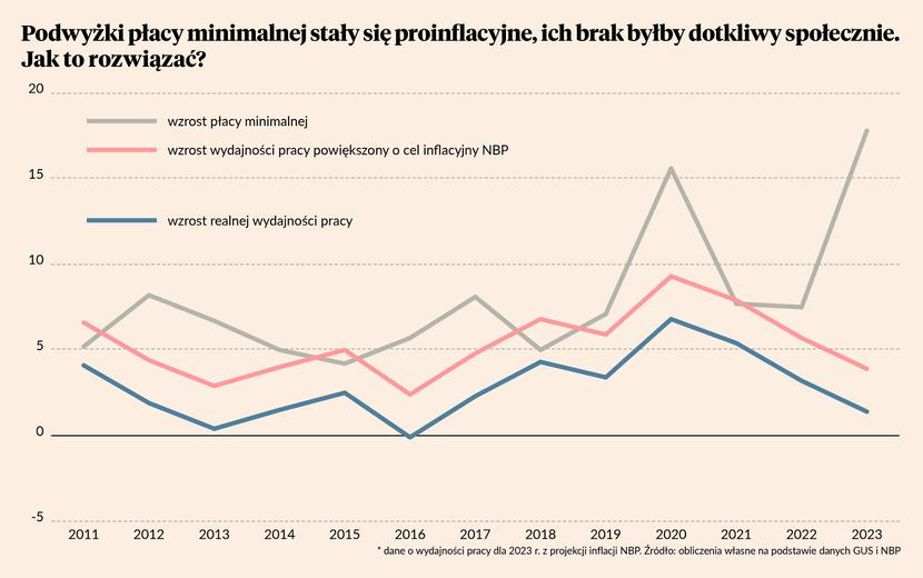 Pierwsza droga to jest ograniczenie podwyżek płacy minimalnej w celu zahamowania nominalnej presji płacowej i ograniczenia powstrzymania oczekiwań inflacyjnych. Sądzę, że w takich warunkach spadek inflacji w Polsce byłby szybszy. Nie tylko dlatego, że cała siatka płac ruszałaby się wolniej w górę i słabiej przenosiła na ceny, ale też dlatego, że rząd wysłałby mocny sygnał do wszystkich podmiotów gospodarczych, że jest zdeterminowany do ograniczenia inflacji różnymi kanałami. Nie tylko kanałem podnoszenia stóp procentowych, ale też prób koordynacji zachowań firm i pracowników. Myślę, że wzmocniłoby to przekonanie ludzi, że inflacja może na serio spadać, że cała polityka publiczna jest zaangażowana w ten cel.