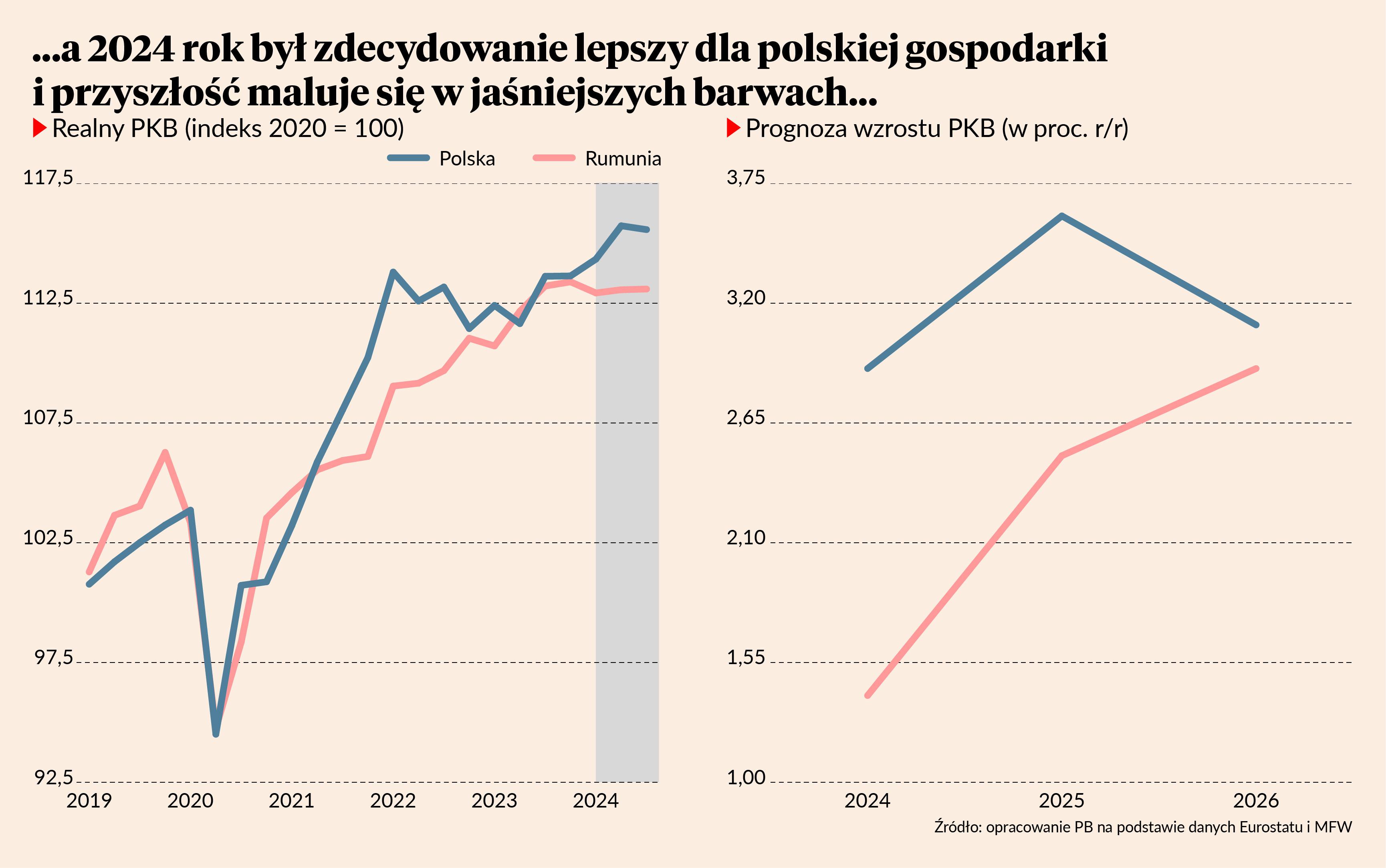 * Co ciekawe, według danych Banku Światowego, Polska w 2023 r. ma wyższy poziom PKB na mieszkańca wg parytetu siły nabywczej niż Rumunia. Wynika to z różnic metodologicznych: inna konstrukcja koszyka towarów i usług oraz inny szacunek poziomu populacji kraju. Miara Eurostatu jest prawdopodobnie bardziej adekwatna, bo bierze pod uwagę masowy napływ uchodźców z Ukrainy w 2022 r.