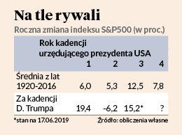 Tyle że obecne wydanie cyklu prezydenckiego w USA może się okazać równie nieprzewidywalne jak sam prezydent. Przeciwko schematowi wyborczemu przemawia bowiem inny schemat — tym razem stricte giełdowy. Otóż przez pierwsze cztery miesiące 2019 r. S&P500 poszedł w górę aż o 17,4 proc. (w połowie czerwcanotował wzrost o 15,2 proc., licząc od początku roku), co było najlepszym wynikiem od 32 lat. Z historii ostatnich 90 lat wynika, że tak dobry początek roku (tj. wzrost o przynajmniej 16 proc.) za każdym razem zapowiadał słabą drugą połowę roku. Najgorszy przypadek to rok 1930, gdy podczas wielkiego kryzysu amerykański rynek akcji został przeceniony o 38 proc.