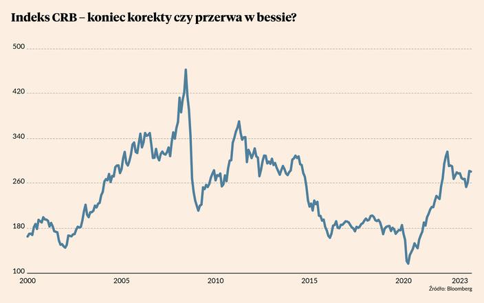 Od czerwca surowcowy indeks CRB już nie ustanawia nowych minimów. Zaś od początku lipca wyraźnie idzie w górę i przez ostatnie dwa miesiące zyskał przeszło 7 proc. Co prawda wciąż znajduje się on blisko poziomów z listopada 2022 r. i do zeszłorocznych szczytów wciąż mu daleko (musiałby zyskać ponad 17 proc.), ale sytuacja na wykresach zaczyna się robić niejednoznaczna.