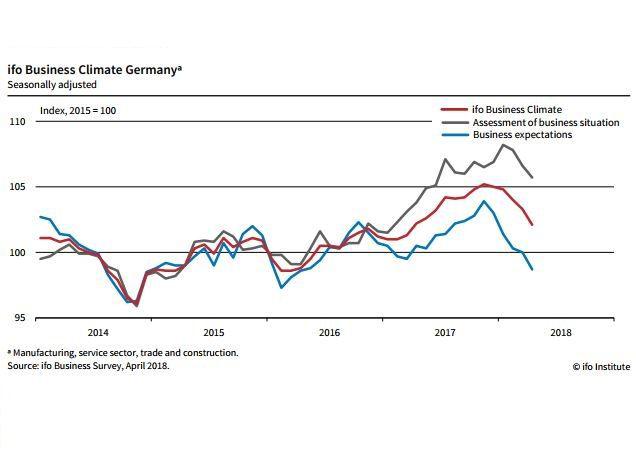 Indeks Ifo spadł w kwietniu do 102,1 pkt. ze 103,3 pkt. w marcu.