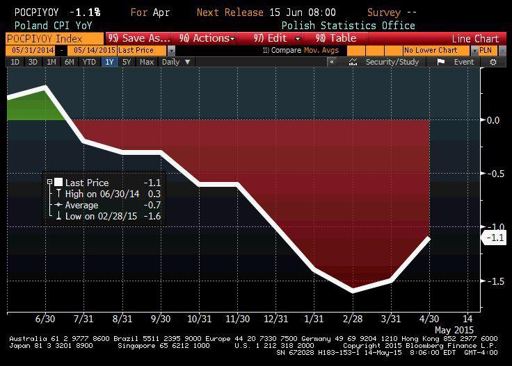 Szesnastu ankietowanych przez ISBnews analityków spodziewa się deflacji w zakresie 1,1-1,4% r/r (średnia wyniosła -1,25%). Ministerstwo Gospodarki przewidywało, że deflacja wyniesie 1,3% r/r w kwietniu.